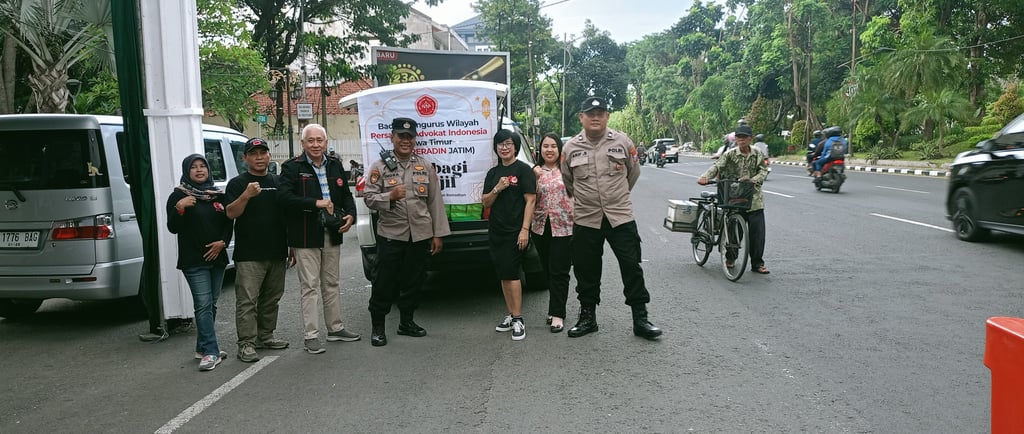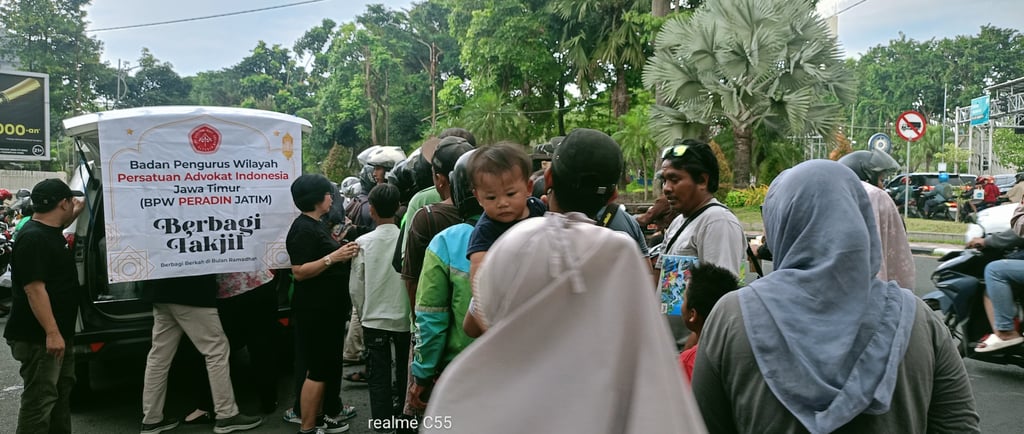 Badan Pengurus Wilayah Persatuan Advokat Indonesia Jawa Timur (BPW PERADIN JATIM) menggelar kegiatan sosial bertajuk “Berbagi Takjil” kepada masyarakat sebagai bentuk kepedulian dan semangat berbagi di bulan suci Ramadan. Kegiatan ini mendapat dukungan dari rekan-rekan Polsek Wonokromo yang turut membantu kelancaran pelaksanaan di lapangan.