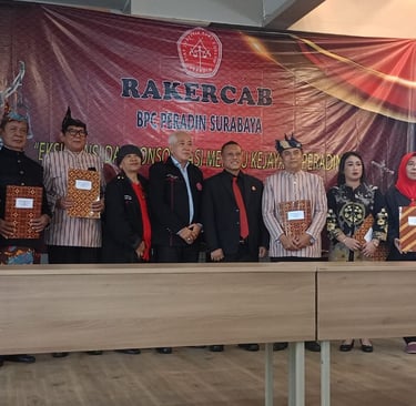 Pada Sabtu 24 Mei 2025 BPC PERADIN SURABAYA, menggelar Rapat Kerja Cabang (Rakercab) dengan tema "Eksistensi dan Konsolidasi Menuju Kejayaan PERADIN".